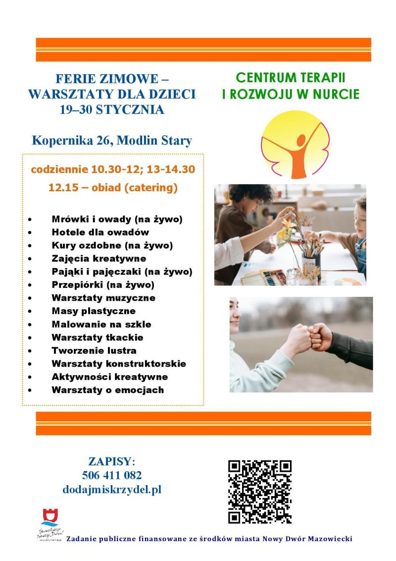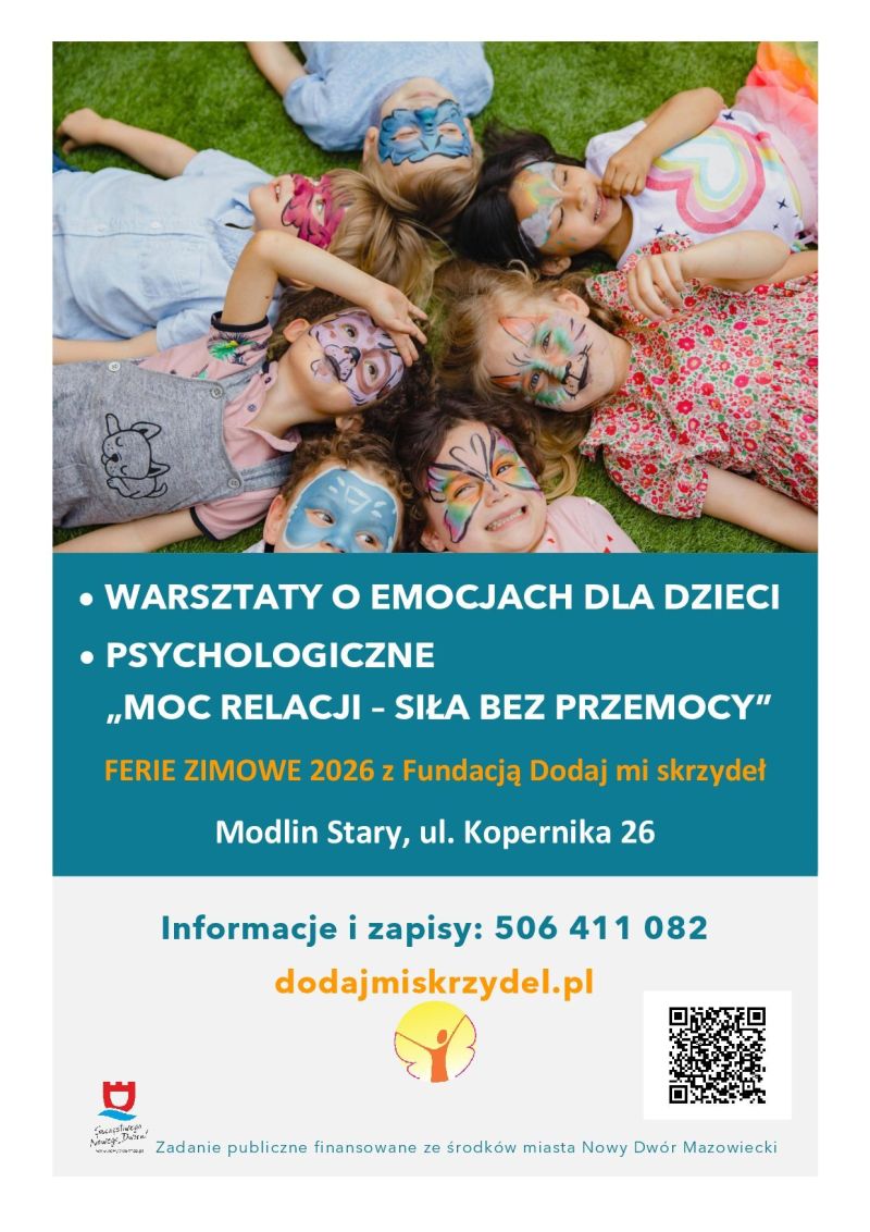 Fundacja Dodaj mi skrzydeł zaprasza na organizowane przy współpracy z Miastem Nowy Dwór Mazowiecki oraz Ośrodkiem Pomocy Społecznej w Nowym Dworze Mazowieckim wydarzenia i warsztaty: