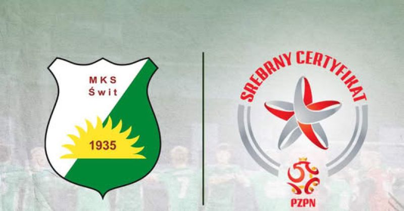 • logotyp MKS Świt oraz srebrna gwiazda PZPN