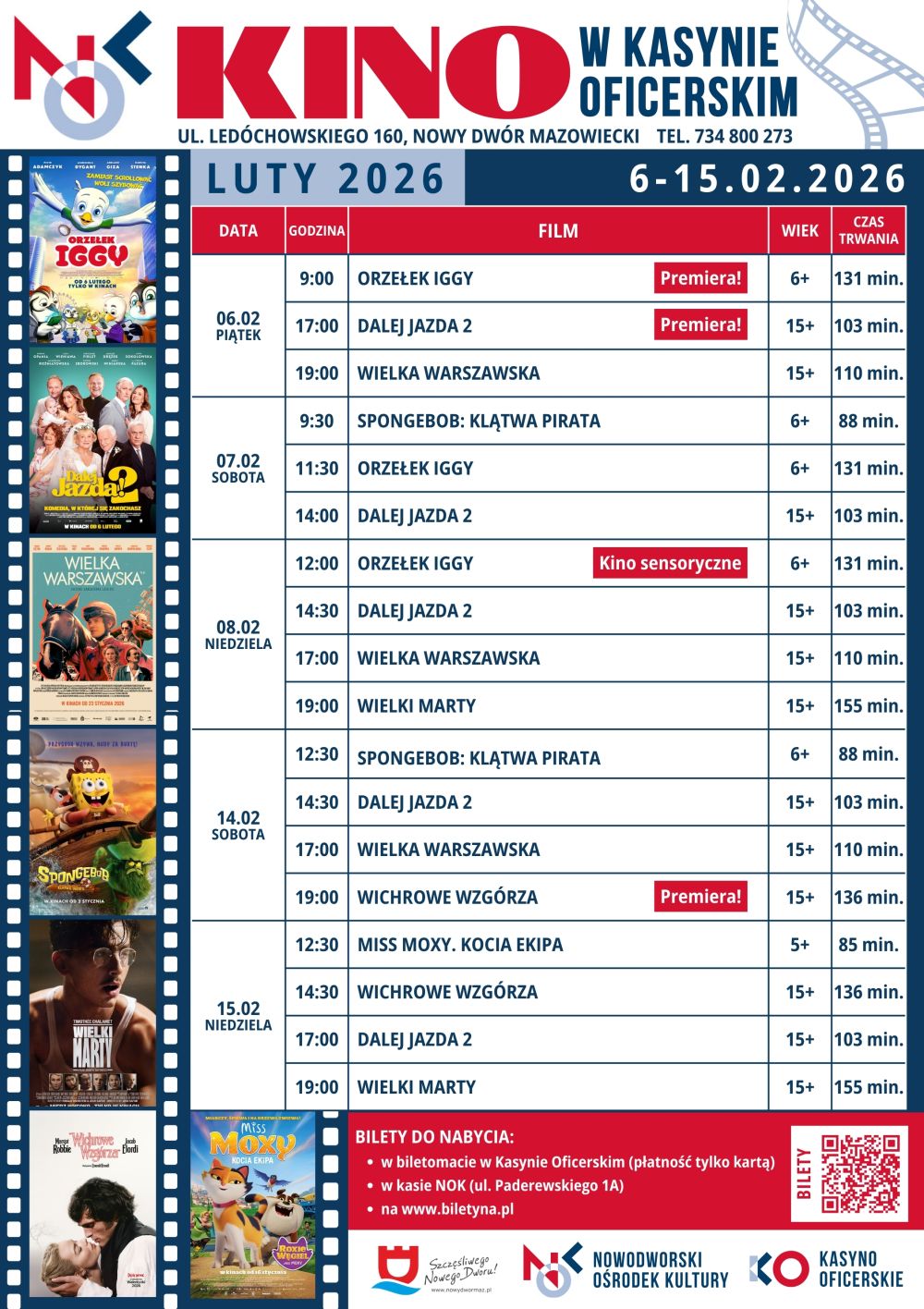 Nowodworski Ośrodek Kultury zaprasza mieszkańców do Kasyna Oficerskiego na lutowe seanse filmowe. W repertuarze znalazły się zarówno propozycje dla dzieci i rodzin, jak i filmy dla młodzieży oraz dorosłych widzów, w tym premiery oraz wydarzenia specjalne.