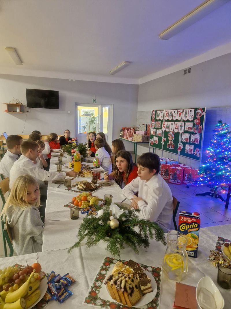 Zanim usiądziemy do wigilijnych stołów wraz z naszymi rodzinami, zebraliśmy się w gronie podopiecznych i wychowawców modlińskiego ogniska TPD. W świątecznych nastrojach dzieliliśmy się opłatkiem, śpiewaliśmy kolędy i zajadaliśmy pyszności. Oczywiście, przybył do nas ten szczególny gość - Mikołaj, który obdarował nas wymarzonymi prezentami. Każdy otrzymał to, o co prosił w liście Mikołaja. Nasz Gość, zanim wręczył upominki, oczekiwał, że pochwalimy się naszymi umiejętnościami. Były to prezentacje wokalne, recytatorskie, taneczne a nawet ... przepytywania z tabliczki mnożenia. Mikołaj pożegnał nas zapewnieniem, że wróci za rok.
