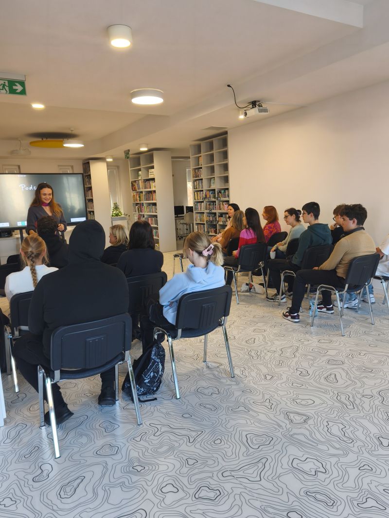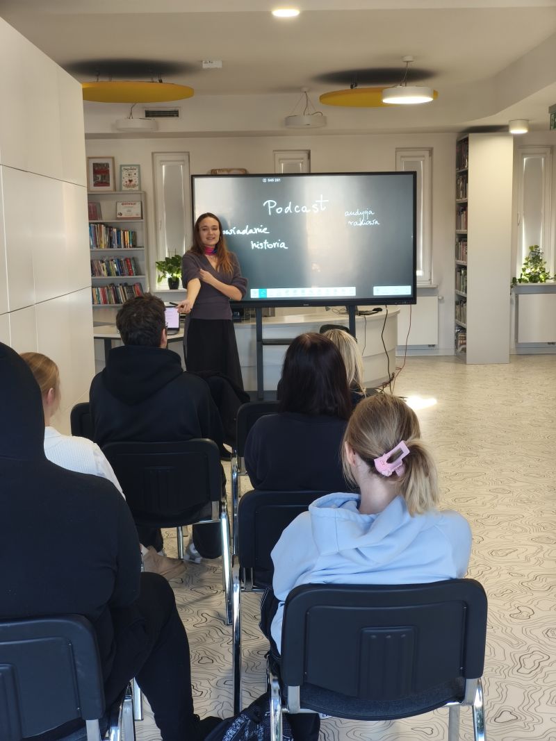 Podczas zajęć młodzież miała możliwość zapoznania się z pełnym procesem tworzenia podcastu – od opracowania pierwszej koncepcji i przygotowania scenariusza, poprzez realizację nagrań, aż po finalny montaż dźwięku. Warsztaty łączyły elementy historii lokalnej z nowoczesnymi metodami komunikacji, stwarzając uczestnikom przestrzeń do twórczego działania oraz rozwijania kompetencji medialnych.
